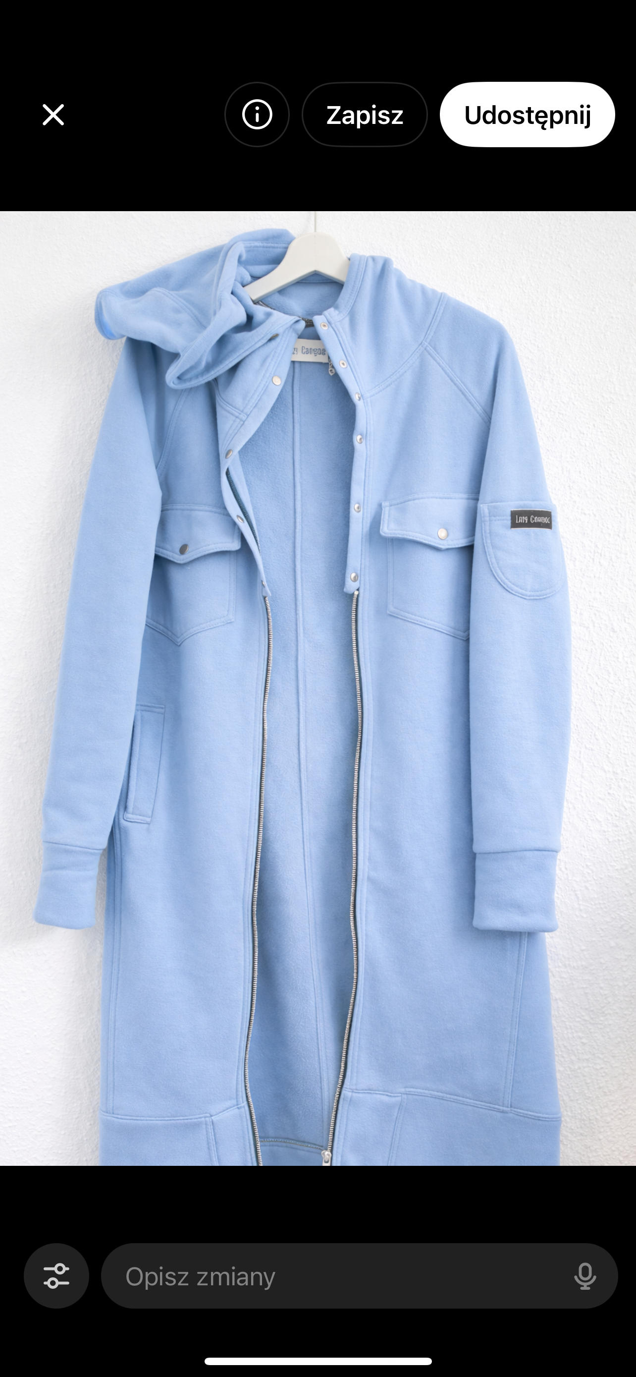 Luźne, długie rękawy, kieszenie boczne.